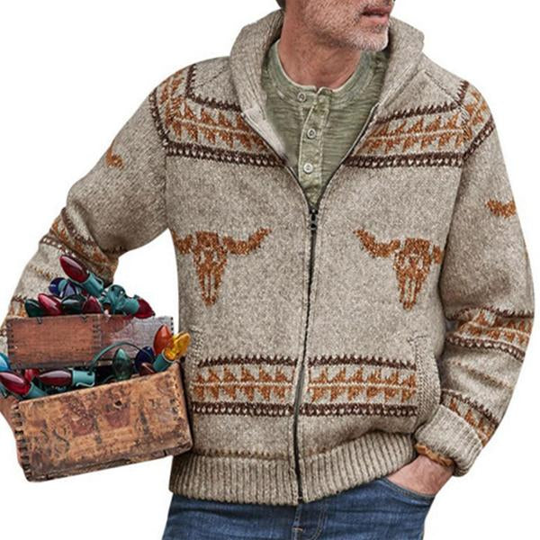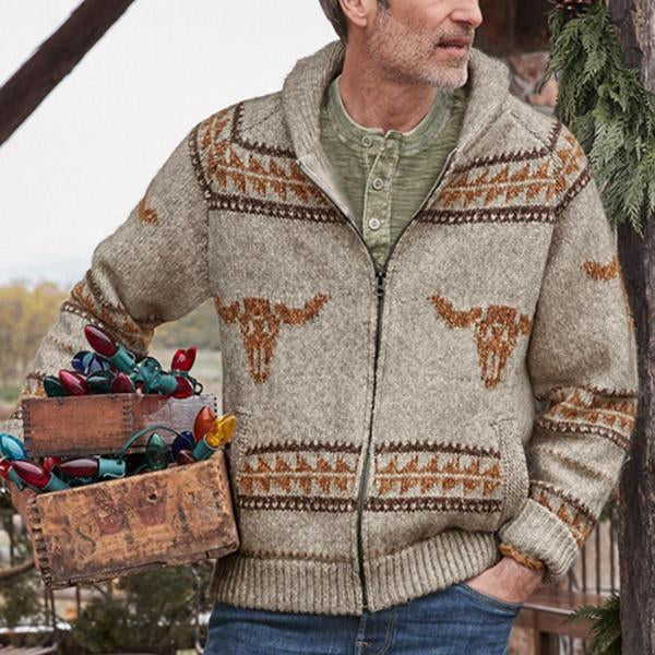Men’s Bull Head Jacquard Zip Knit Cardigan 14393618X