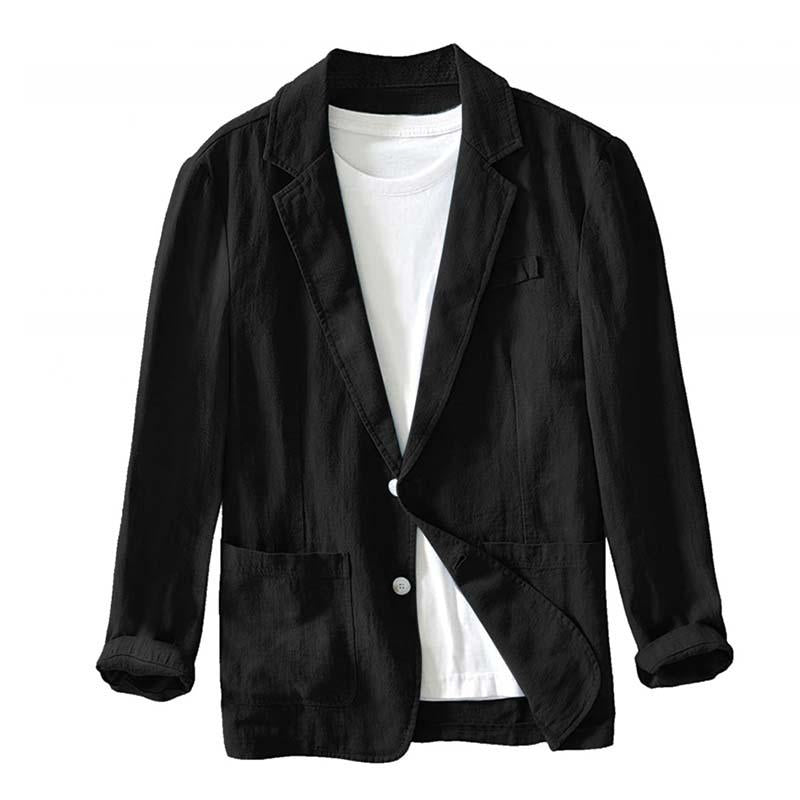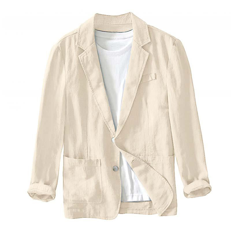 Cotton Linen Fabric: The blazer is crafted from a blend of cotton and linen fabric, combining the breathability and softness of cotton with the lightweight and natural texture of linen. This fabric blend ensures comfort and allows for breathability, making it suitable for various weather conditions.