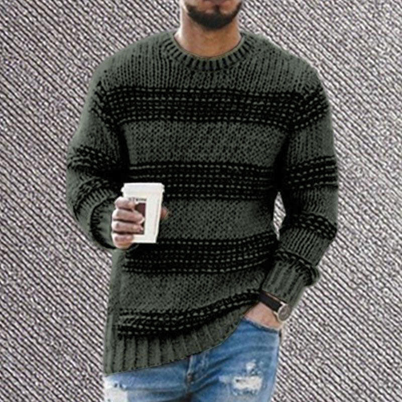 Unlike other solid-colored sweaters, this pullover features thin stripes that create a subtle yet striking effect. The exquisite ribbed hem and cuffs add a touch of elegance to this otherwise simple sweater, making it perfect for both casual and formal occasions.
