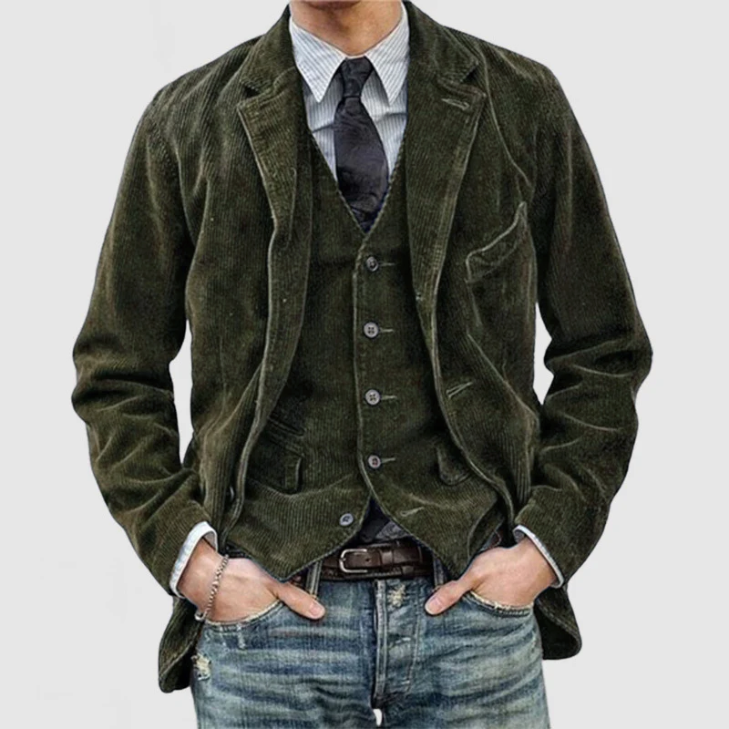 The blazer is made of soft corduroy fabric. Corduroy is a durable ridged fabric. This fabric is most known for its unique ridged pattern, thick in texture, soft in touch, comfortable in appearance  and wear. When it is weaved in a variety of widths by corduroy producers, then it is made into blazers. Fabric historians believe that corduroy originated in approximately 200 AD from an Egyptian fabric called fustian. Now corduroy fabric has regained popularity.