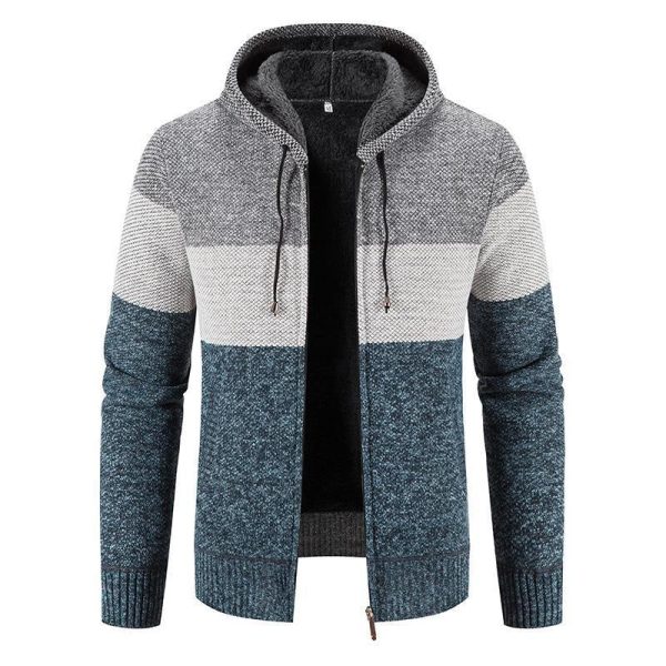 The Men’s Casual Solid Color Stand Collar Zipper Knitted Long-Sleeved Cardigan effortlessly combines style and warmth.