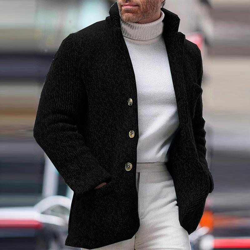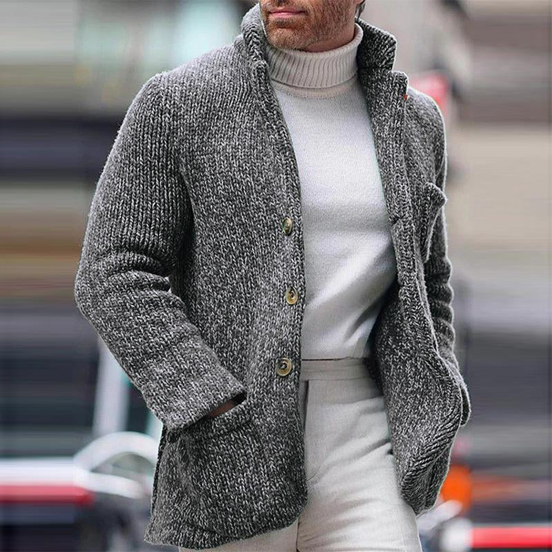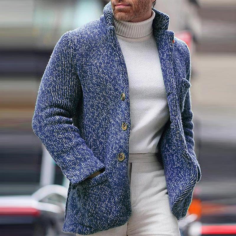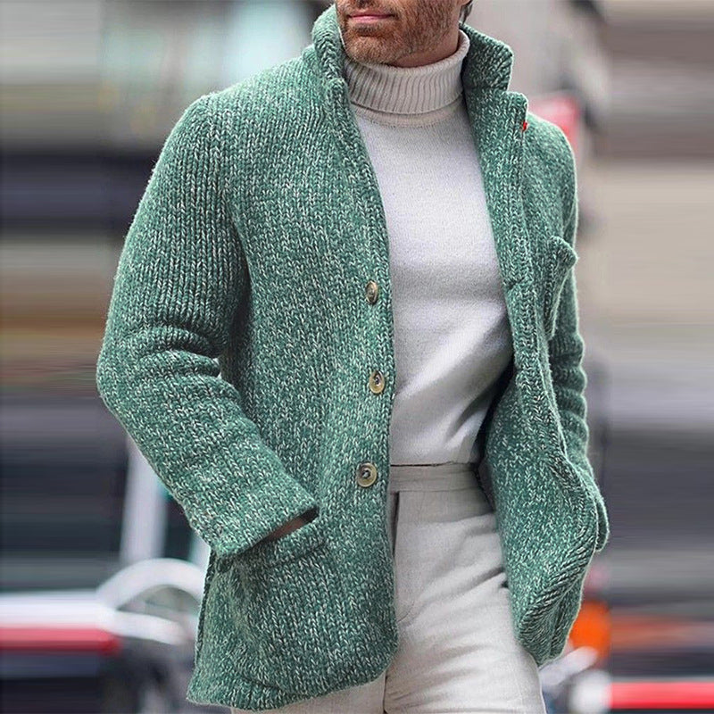 Product: Men’s Casual Stand Collar Single Breasted Pocket Knit Cardigan