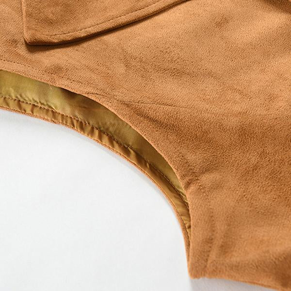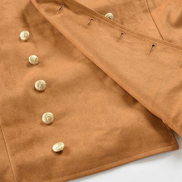 Men’s double breasted vintage vest is built from suede fabric. It is soft and its smooth nap gives it an appealing fabric texture.