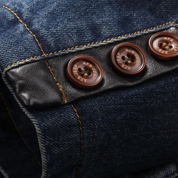 The Men’s vintage Blazer is made of soft denim fabric. Denim is a sturdy cotton warp-faced textile. Over time dry denim will fade as if the natural distressing process, which is usually considered fashionable. Comfortable, soft, our superbly, single-breasted blazer is trimmed in classic lapel collar with leather fabric. Fully lined design make it comfortable.
