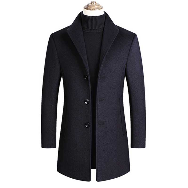 Men’s Lapel Single Breasted Woolen Coat 30371092Z