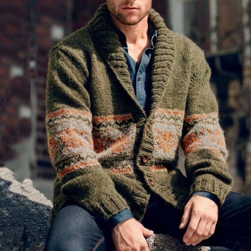 The jacquard-pattern, combined with straight version, is full of fashion and beauty. In addition to retaining the essential comfort of knitting, this men’s lapel vintage jacquard knit single-breasted jacket with fine ribbed cuffs and hem has a full street feel no matter it is worn with any clothes.