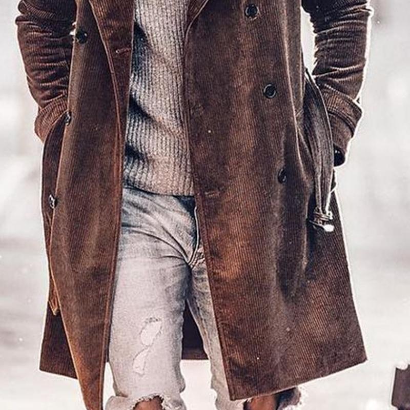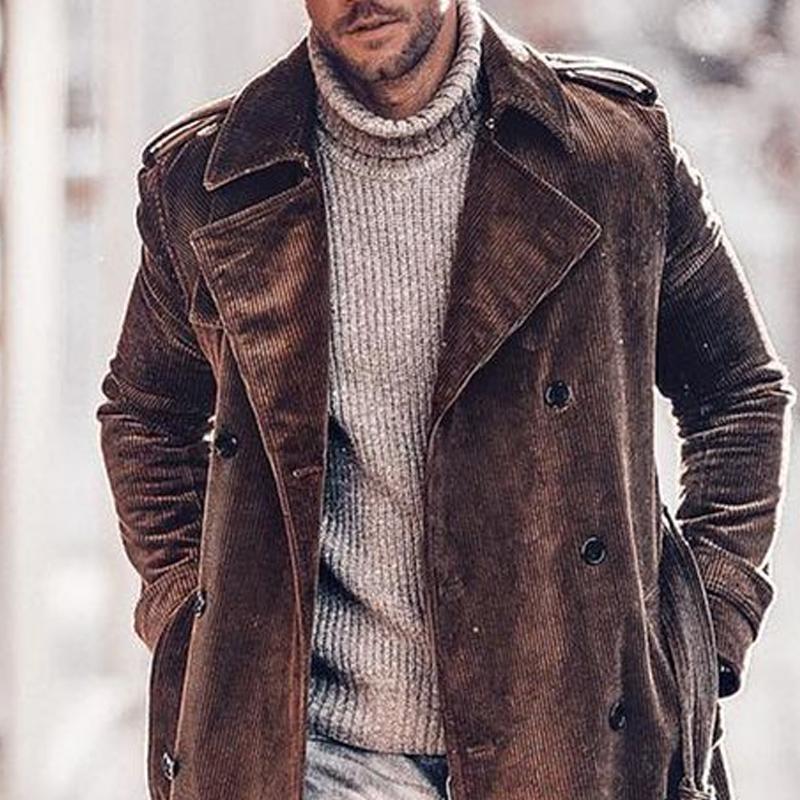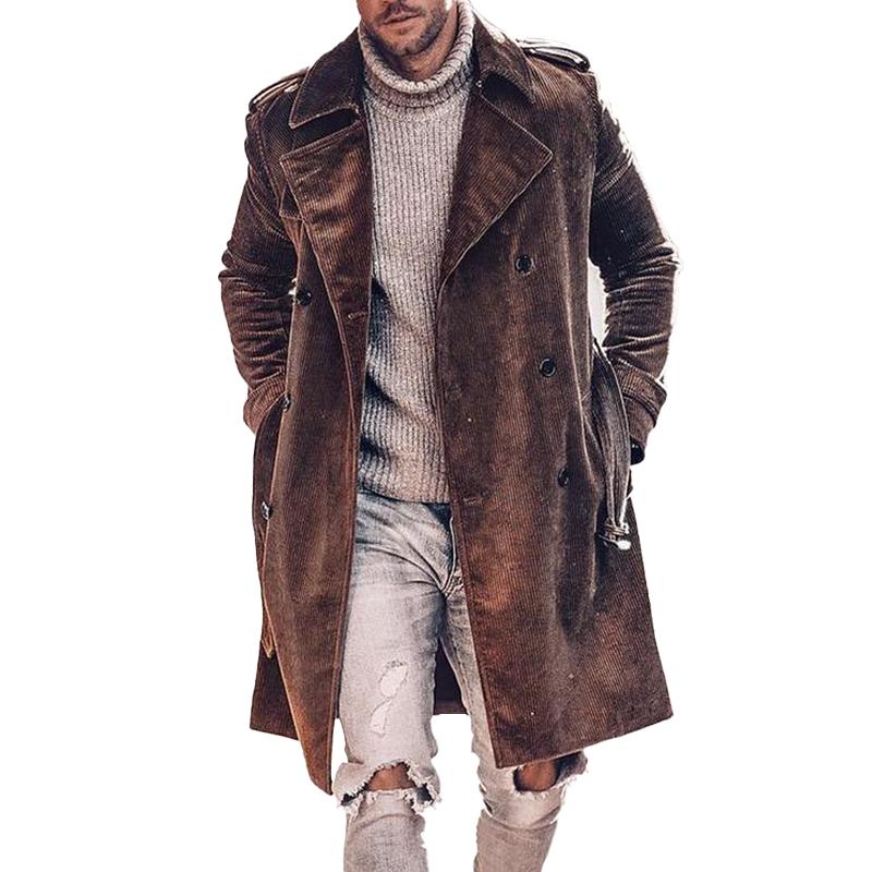 The Men’s Solid Color Corduroy Lapel Coat features notched lapel collar, double-breasted design, practical and stylish belt, and adjustable cuffs. Let your styling skills truly shine by complementing this look with brown leather casual boots and jeans.