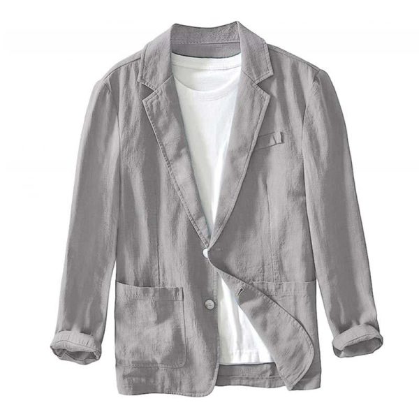 Introducing our Men’s Solid Color Lapel Cotton and Linen Blazer, expertly tailored from a refreshing blend of cotton and linen fabric. The garment undergoes garment dyeing, creating a perfect fit and stylish look. This blazer offers a unique interpretation of the classic design, making it ideal for beach weddings or casual office wear in warmer months.