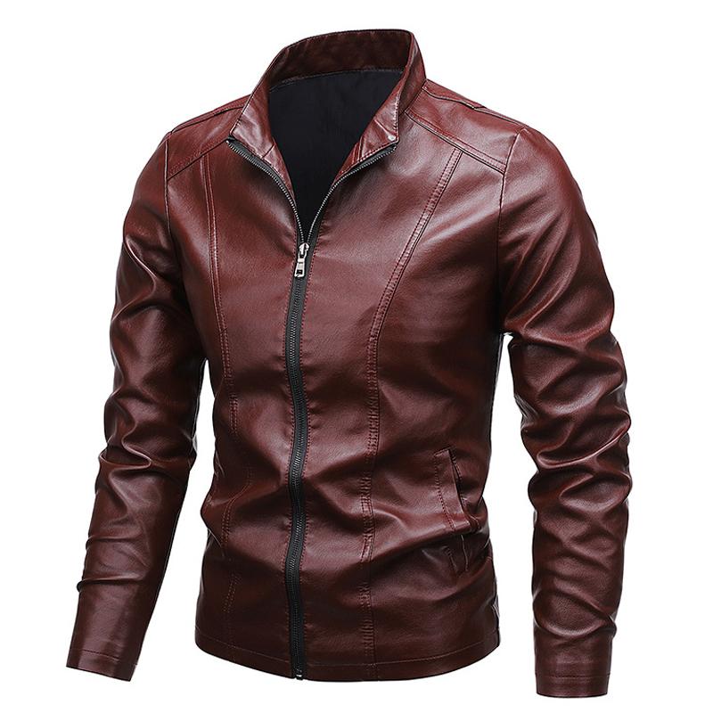 Men’s Stand Collar Zip Leather Jacket 28307494X