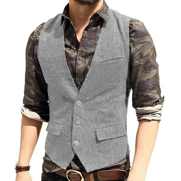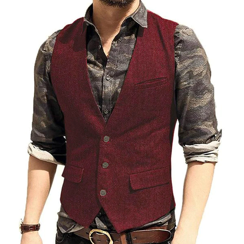 Men’s V-Neck Single-Breasted Tweed Vest – the epitome of timeless style and sophistication.