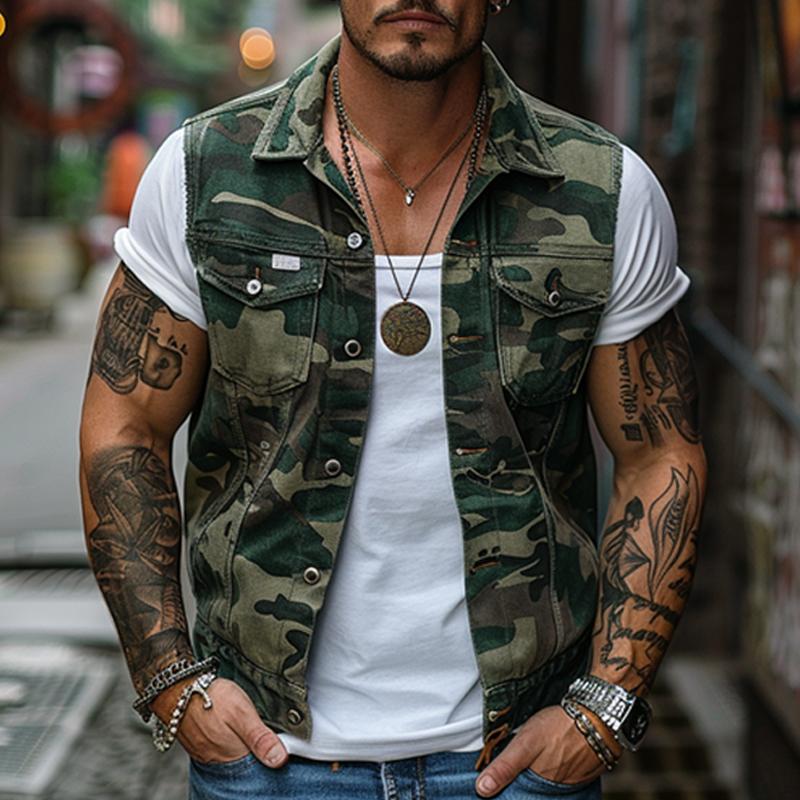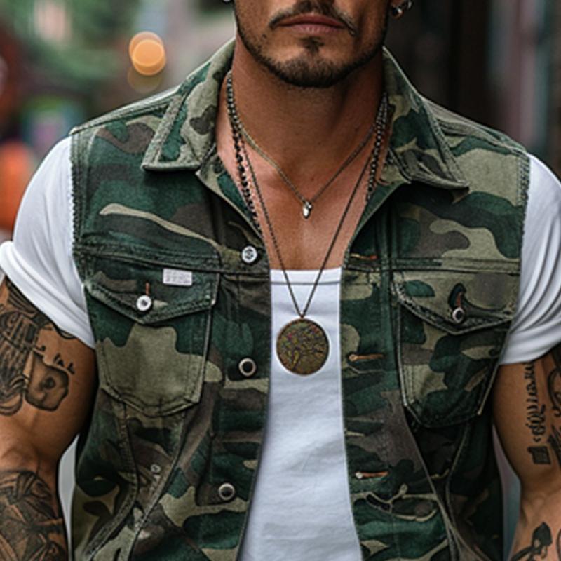 Upgrade your wardrobe with this Men’s Vintage Camouflage Canvas Lapel Vest and embrace a perfect blend of style and functionality.
