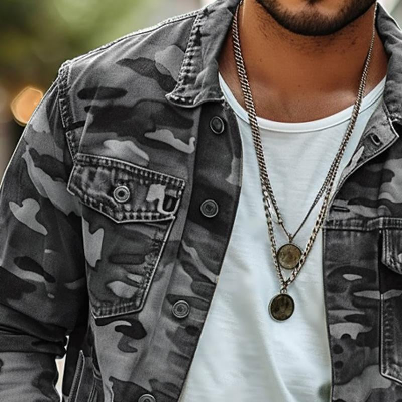 Elevate your style with the Men’s Vintage Camouflage Print Single Breasted Jacket. This versatile piece combines classic vintage aesthetics with contemporary design elements, perfect for any casual or outdoor occasion.