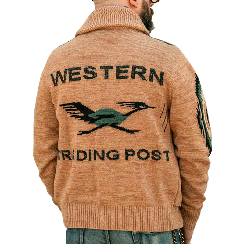 The Men’s Vintage Lapel Jacquard Knit Cardigan is designed with striped, geometric motifs and roadrunner pattern at the back for a luxurious finish. The chunky hem and sleeve cuffs of the pullover hoodie are all rib-stitch, which keeps them nice and tight to seal out warm. You can wear it for many years in confidence.