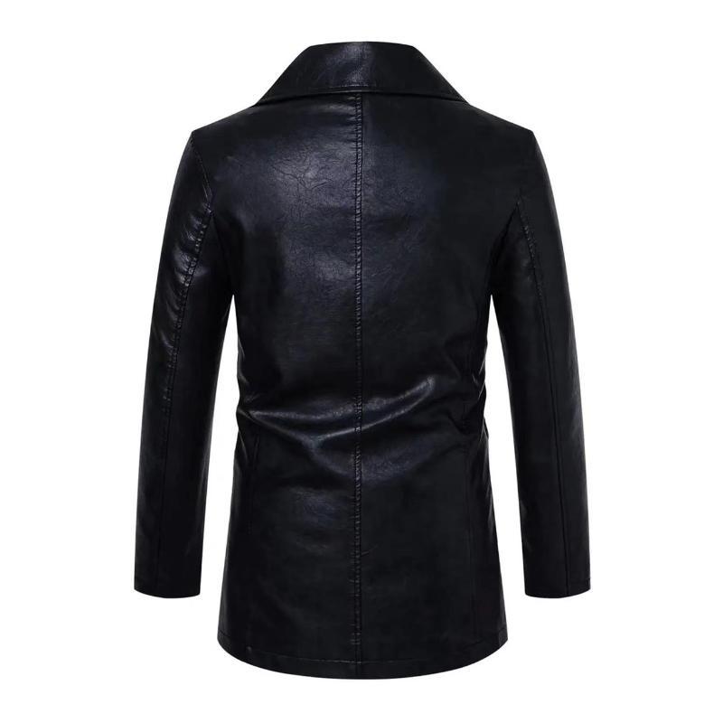 Men’s Vintage Notch Lapel Double Breasted Slim Fit Leather Trench Coat